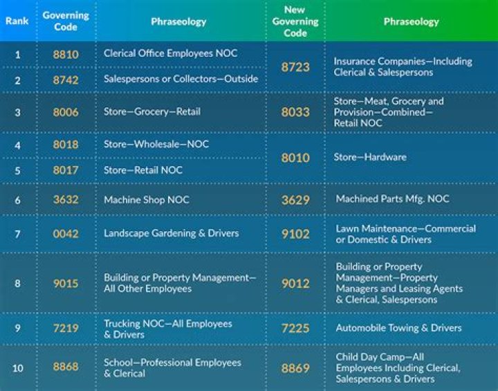 Class Codes are a compilation of job definitions designed to accurately identify various workplace exposures. Each specific job classification is assigned a four-digit number. Each workers comp code has its own rate for the purpose of calculating premium on a policy.