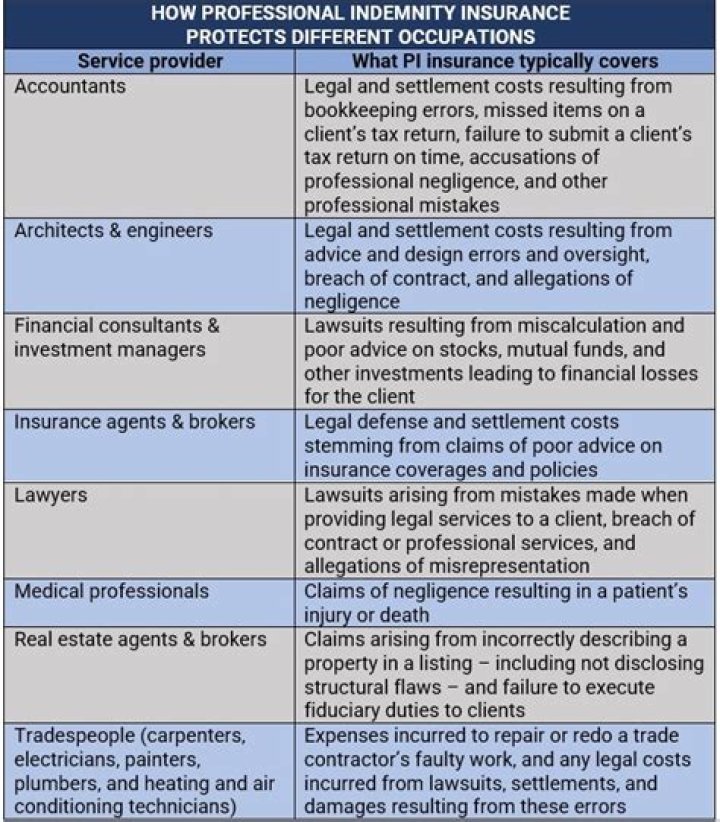 - Professional indemnity insurance: