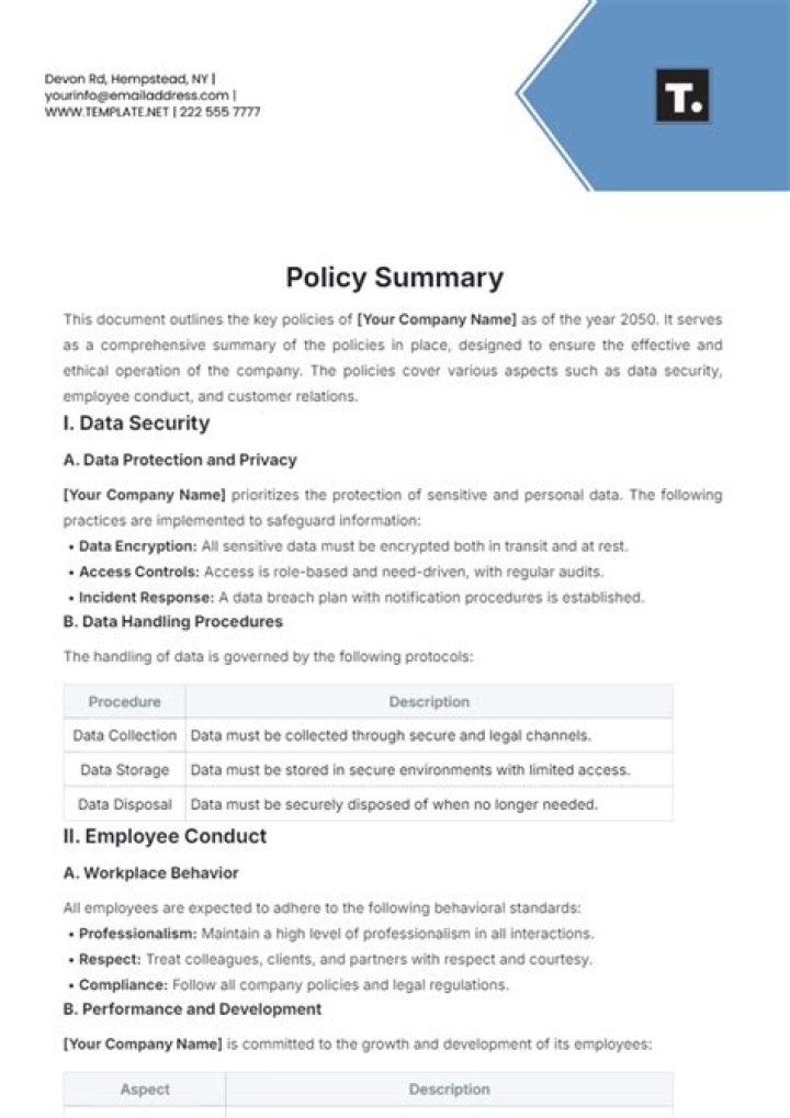 Which of the following is included in the policy summary?