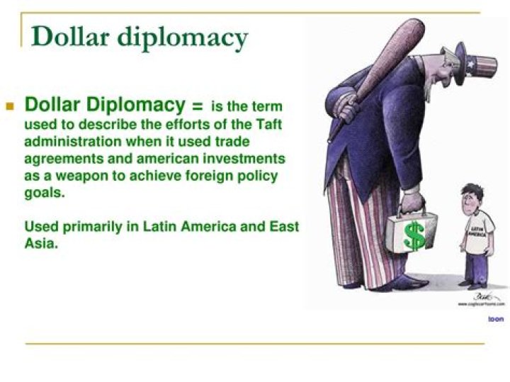 Dollar diplomacy refers to the U.S. foreign policy created by President William Howard Taft and Secretary of State Philander C. Knox in 1912. Despite some successes, dollar diplomacy failed to achieve its goals, resulting in the term being used negatively today.