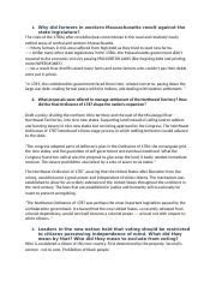 Terms in this set (29) Shays rebellion was a protest by farmers who faced problems from. debts they owed to creditors. The number of states needed to ratify the constitution before it could go into effect.
