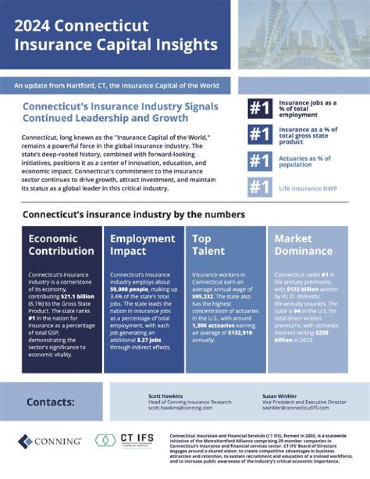 Nicknamed the “Insurance Capital of the World”, Hartford holds high sufficiency as a global city, as home to the headquarters of many insurance companies, the region’s major industry. Other prominent industries include the services, education and healthcare industries….