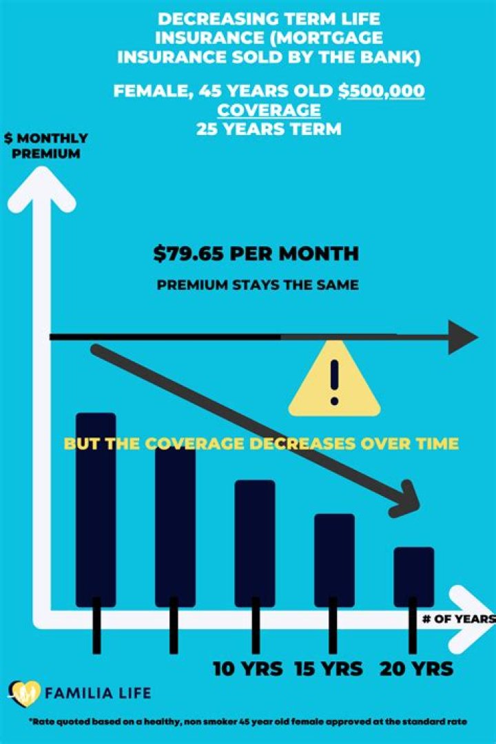 Benefits of decreasing-term insurance Because the payout amount falls over time, decreasing-term policies usually cost less than similar level-term coverage. Another benefit: You don’t need to pass a medical exam to buy the policy.